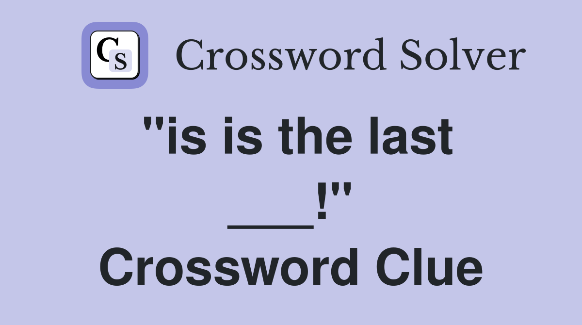 "is is the last ___!" Crossword Clue Answers Crossword Solver