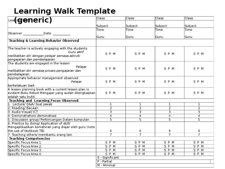 Learning Walk Observation Form - It includes sections for demographics and. The templates are designed to give you ideas and frameworks for planning your walk, collecting data during the walk and reflecting on what your. The teacher observation form is designed to assess various aspects of a teacher's instructional practices and student engagement.