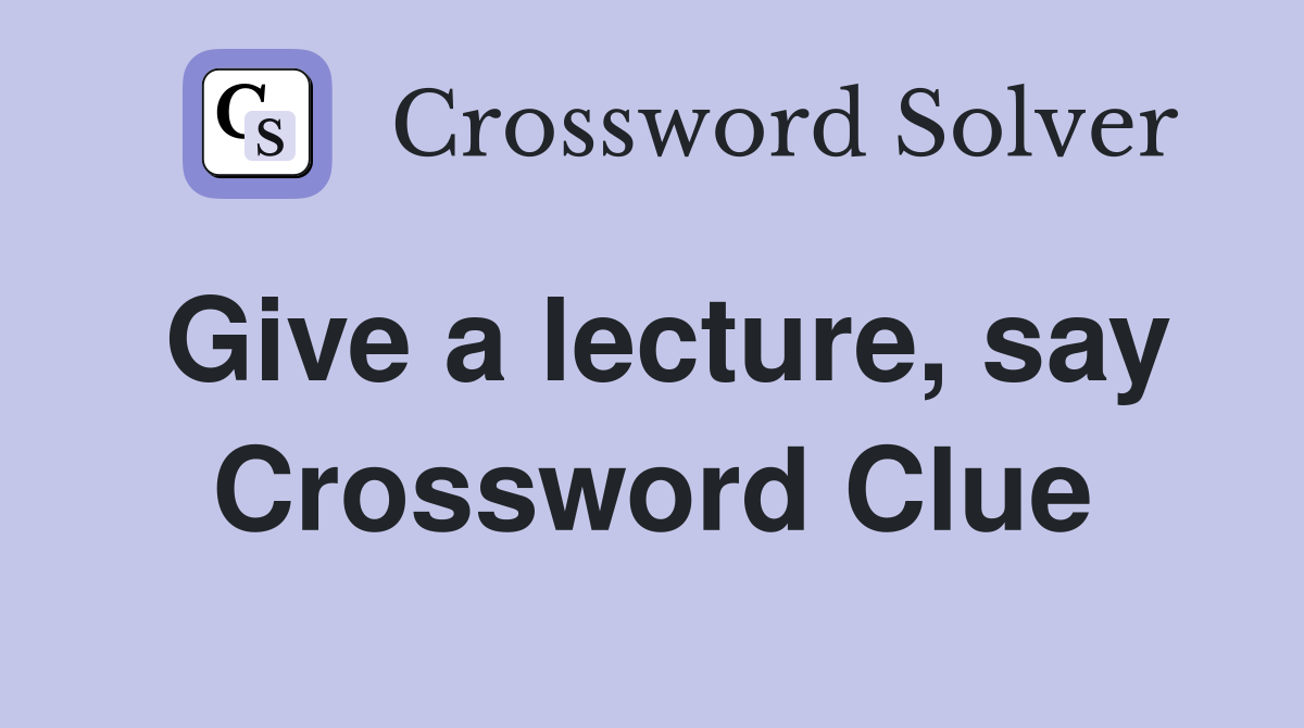 October 20, 2024 answer of give a lecture say clue in nyt crossword puzzle. Lecture students say crossword clue. Here is the answer for the crossword clue lecture students, say. We have found 40 possible answers for this clue in our database. This crossword clue was last seen on september 19 2022 daily.