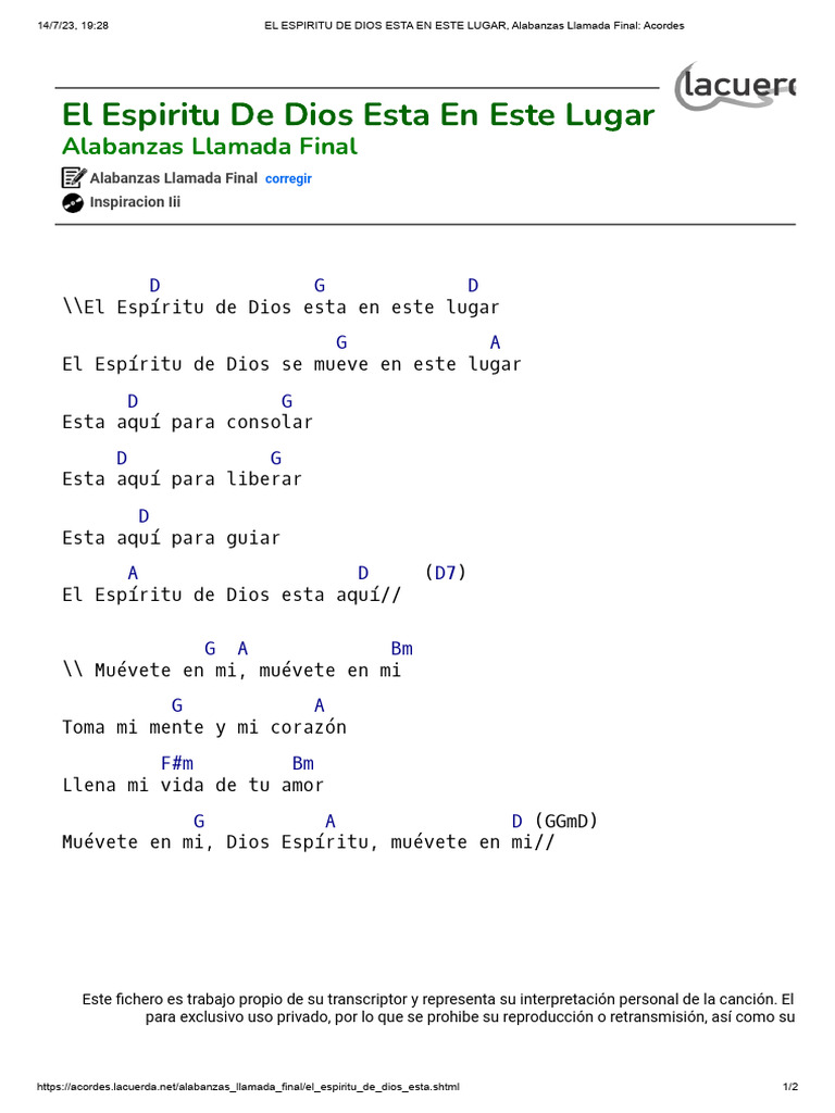 Acordes de el espiritu de dios me a hecho libre, inspiración: Letra y acordes de «libre» por miel san marcos aprende a tocar la canción, ve el video oficial, video tutoriales, y video acordes. Traducción de la letra de libre (en vivo) de miel san marcos al ingles. Letra y acordes de guitarra. Caen, las murallas caen / las cadenas, dios destruyó / libre soy / libre, dios me hizo libre / él venció. Donde el espíritu de dios está hay libertad, puedo adorar todas mis culpas y maldades fueron borradas. Libre [live] lyrics by miel san marcos. Aprende a tocar esta canción. Donde el espíritu de dios está hay libertad, puedo adorar todas mis.