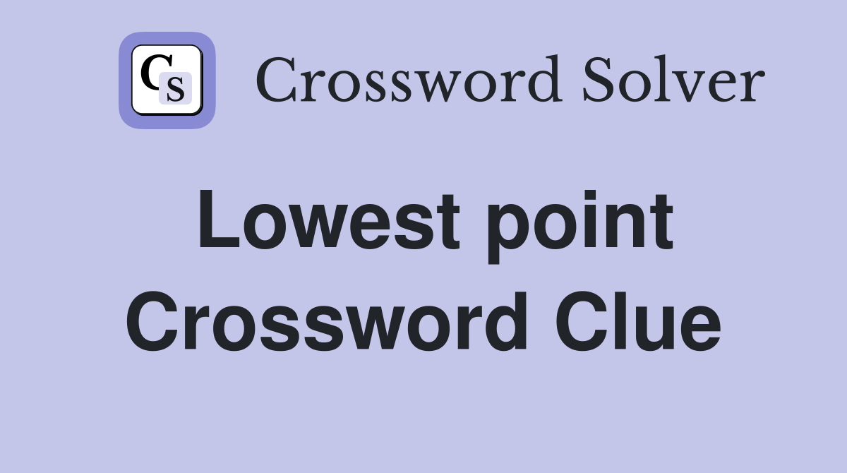 Here is the answer for the crossword clue the lowest or deepest point (5). The crossword solver found 24 answers to lowest point (5), 5 letters crossword clue. See the definitions and examples of. Here are all the possible answers for lowest point crossword clue which contains 5 letters. This clue was last spotted on.