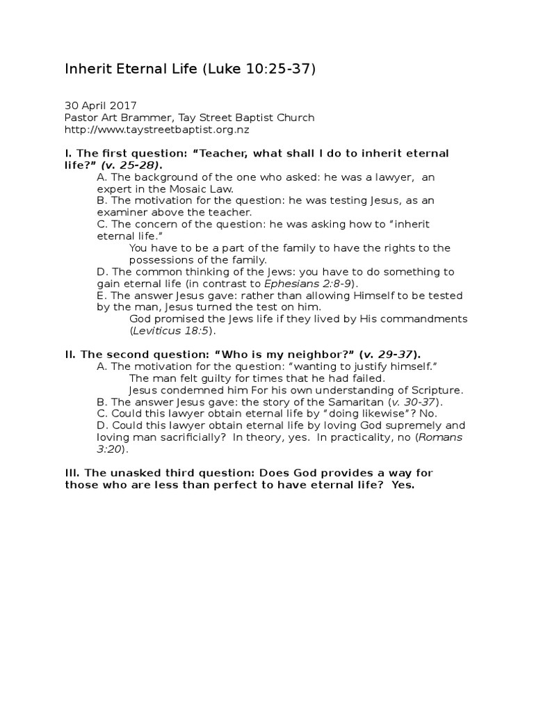 Inherit Eternal Life (Luke 102537)