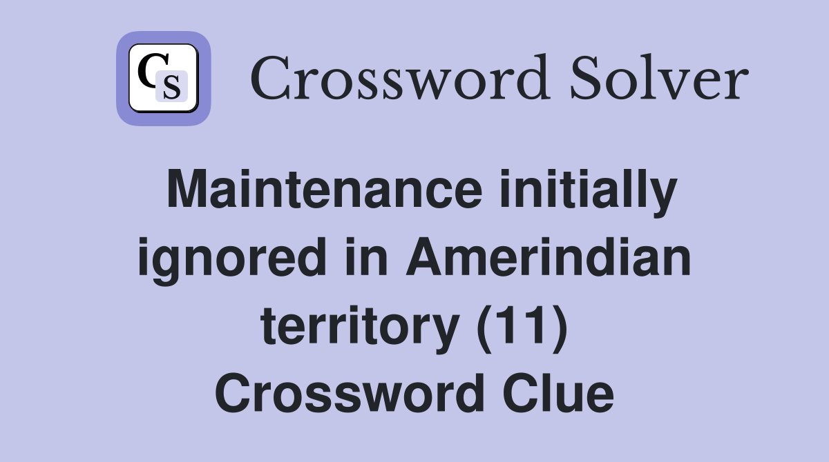 Maintenance initially ignored in Amerindian territory (11) Crossword