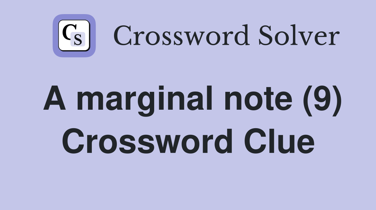 A marginal note (9) Crossword Clue Answers Crossword Solver