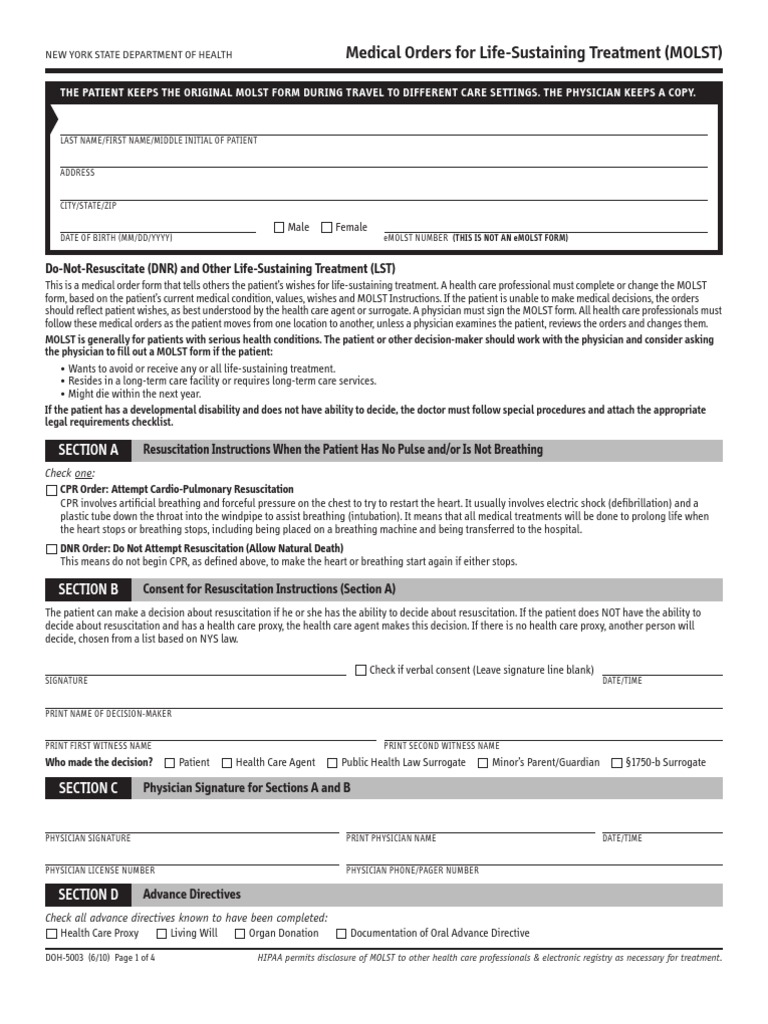 Maryland Molst Is A Portable And Enduring Medical Order Form Covering Options For Cardiopulmonary Resuscitation And Other Life.