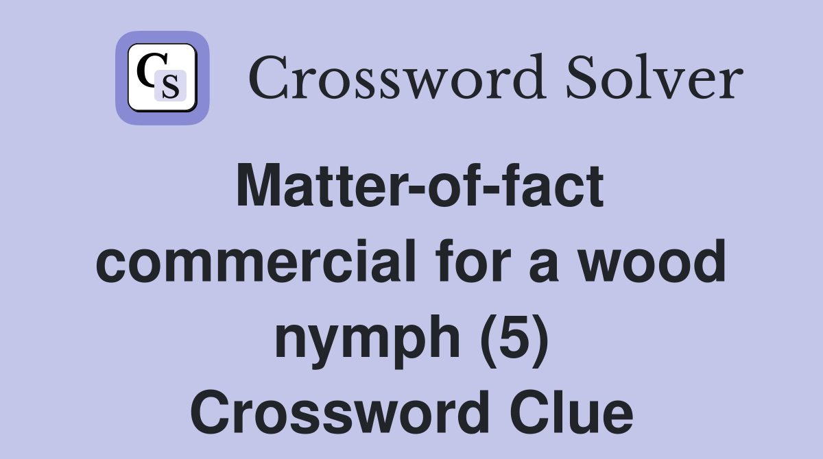 Matteroffact commercial for a wood nymph (5) Crossword Clue Answers