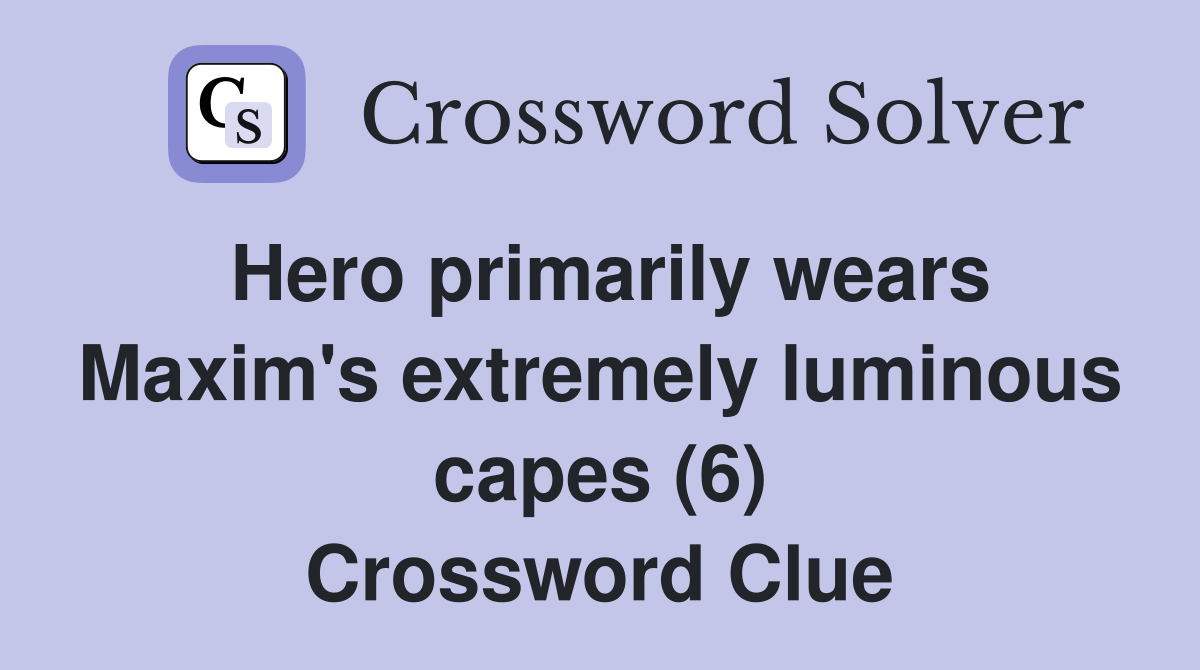 Hero primarily wears Maxim's extremely luminous capes (6) Crossword