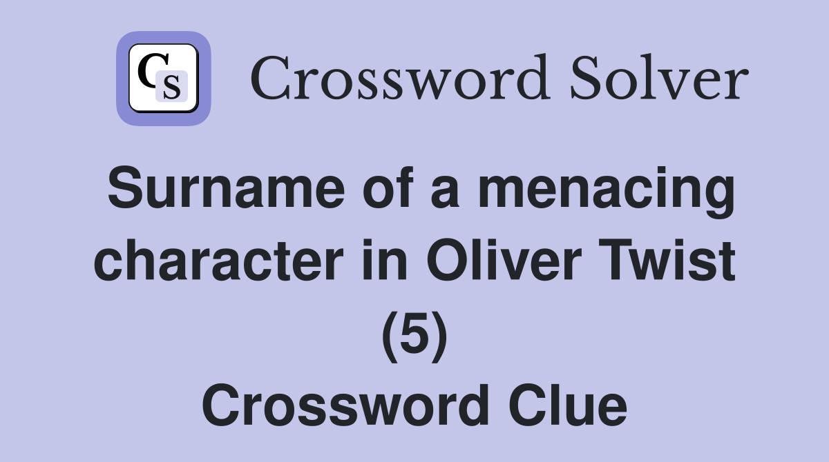 Surname of a menacing character in Oliver Twist (5) Crossword Clue