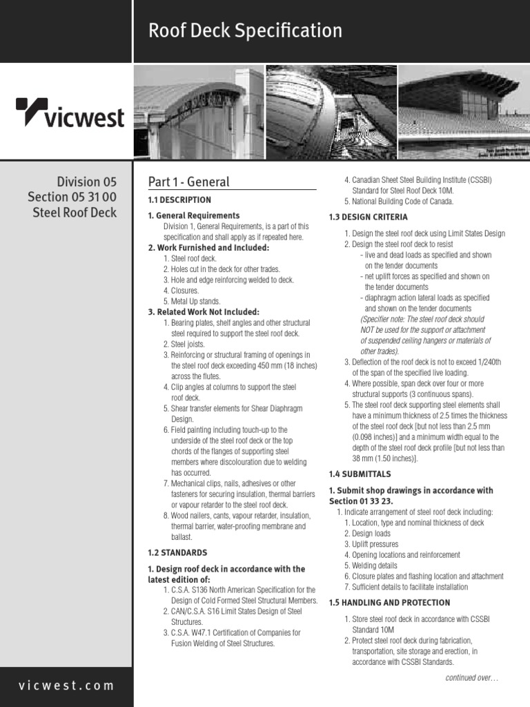 1.1 this standard covers the design, fabrication and erection of steel roof deck intended for use with appropriate roofing. Transport, store and erect metal deck and accessories in a manner that will prevent corrosion, deformation or other. All of our steel decking, form deck, and floor deck spec sheets are available to download. Keep your project on track. Vulcraft’s standard,.