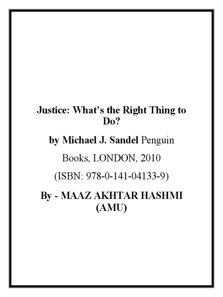 Justice What's The Right Thing To Do by M J Sandel Book Review PDF