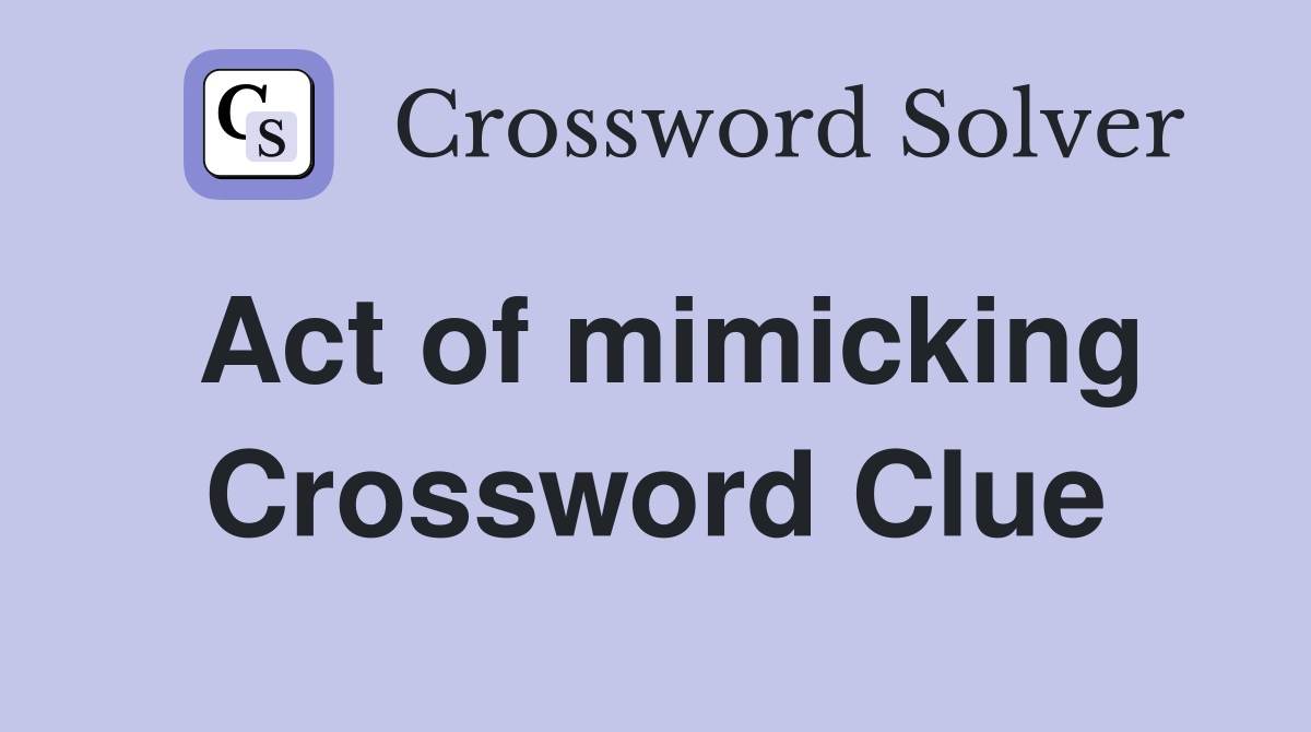 Act of mimicking Crossword Clue Answers Crossword Solver