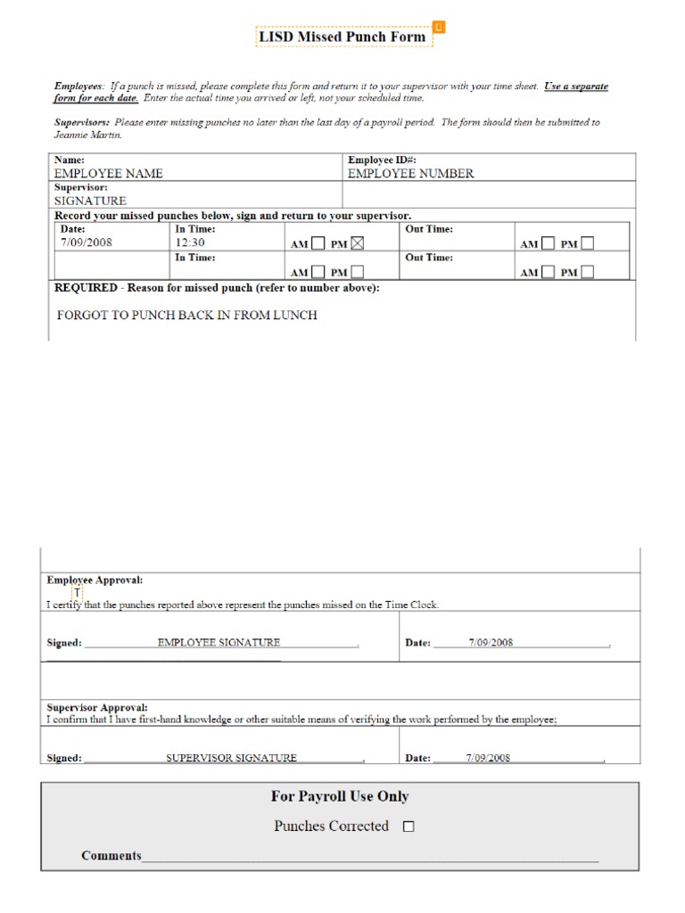 An employee that establishes a pattern and/or excessive missed punches will be subject to discliplinary action, up to and including. A missed punch form is an essential tool in the hr toolkit, facilitating accurate timekeeping and ensuring payroll precision.