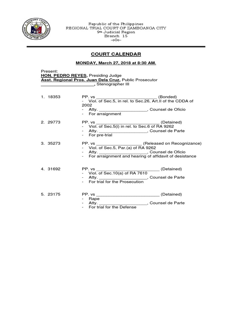 Court Calendar Sample PDF
