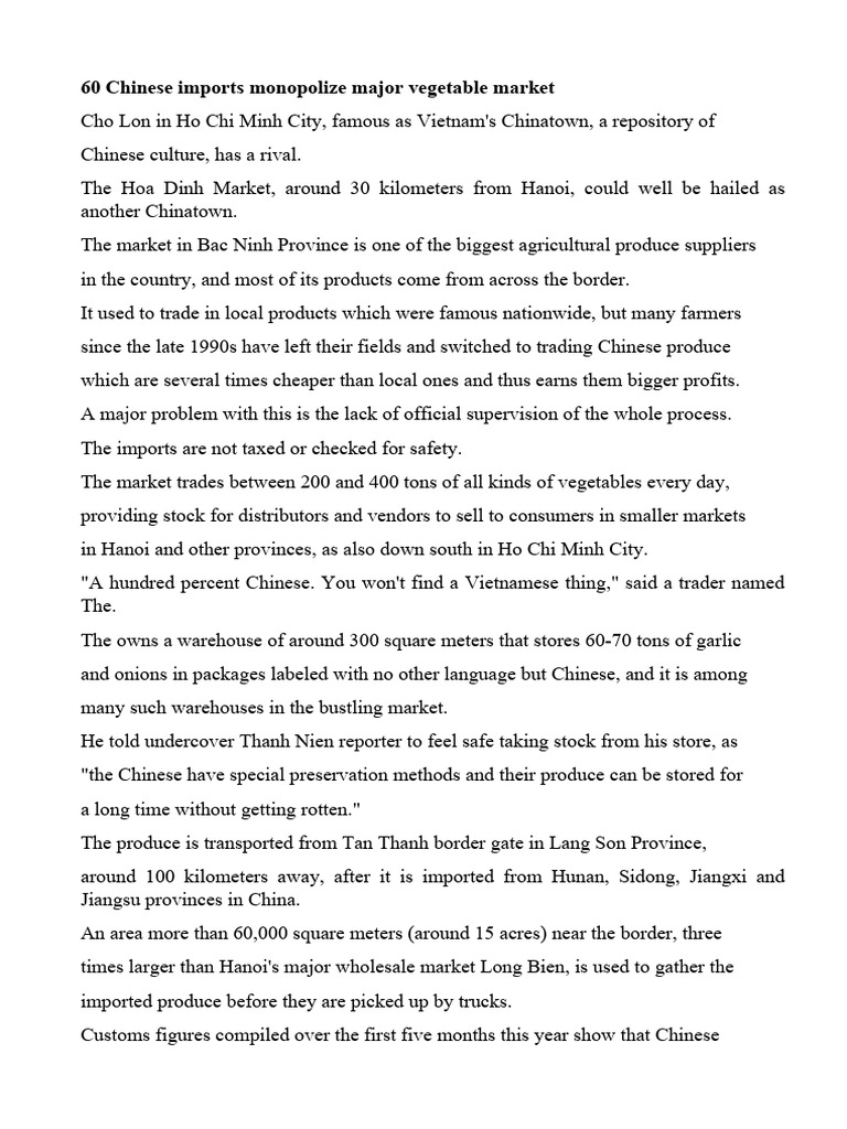 60 Chinese Imports Monopolize Major Vegetable Market PDF Vietnam