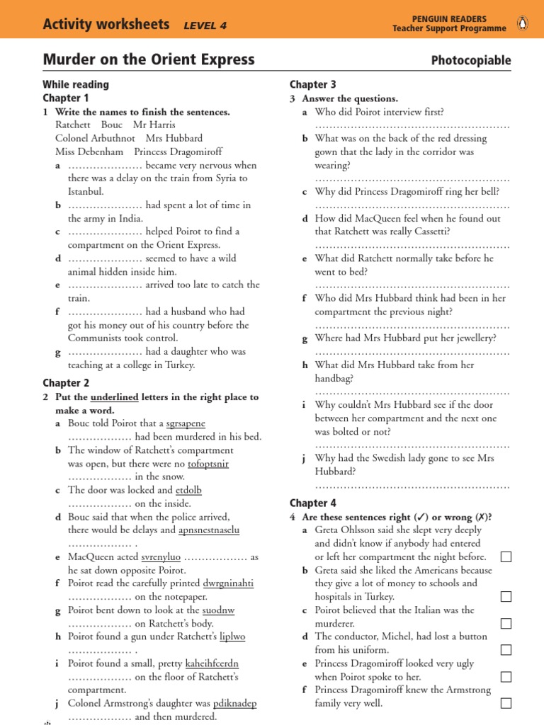 Murder On The Orient Express Activity Worksheets - Inside you'll find 30 daily. The murder on the orient express lesson plan contains a variety of teaching materials that cater to all learning styles.