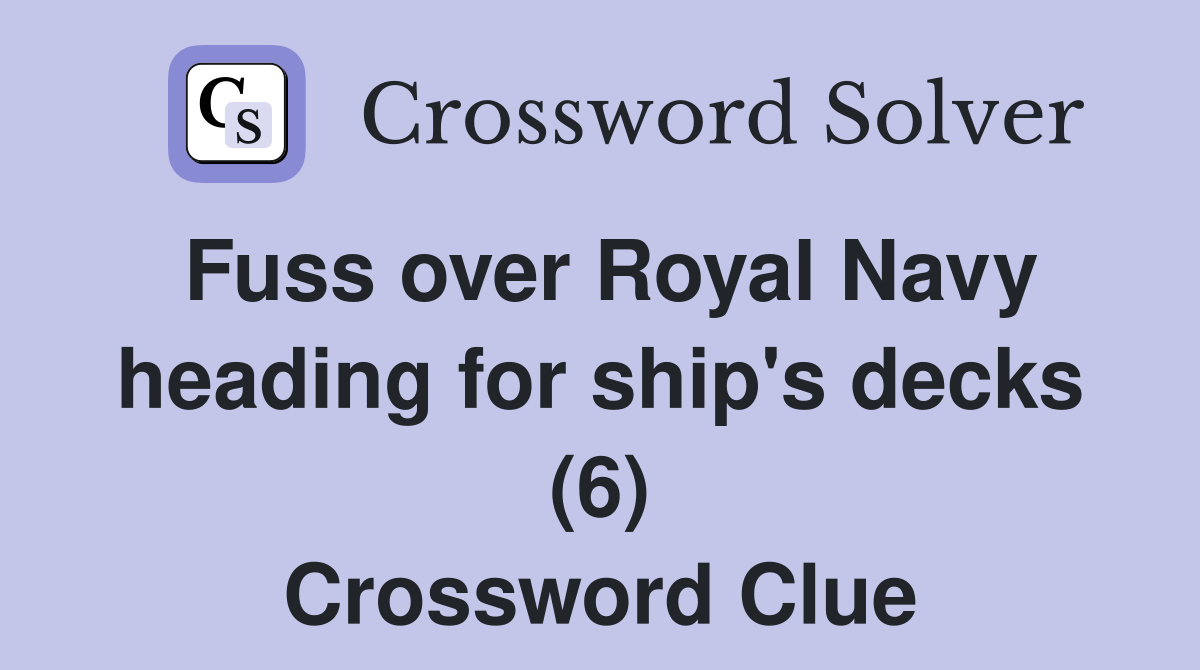 Fuss over Royal Navy heading for ship's decks (6) Crossword Clue