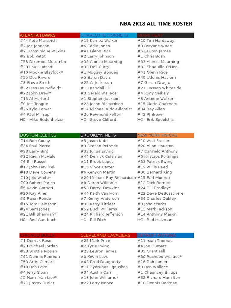 NBA AllTime Roster PDF Chicago Bulls Basketball Teams