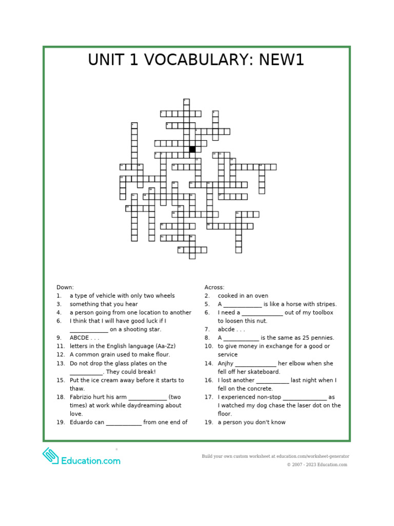 Unit 1 Vocabulary Crossword 1 The Puzzle PDF