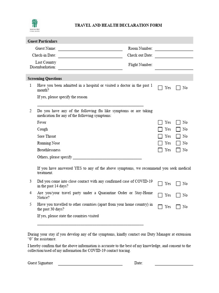 Travel Health Declaration Form Declaration Form