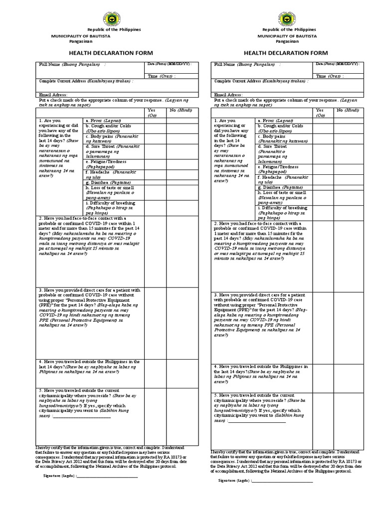 Health Declaration Form Philippines 2023 Printable Forms Free Online