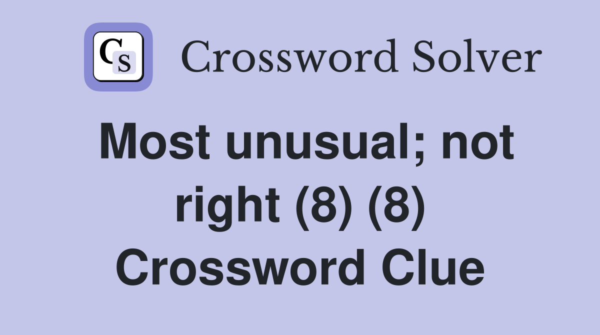 Most unusual; not right (8) (8) Crossword Clue Answers Crossword Solver