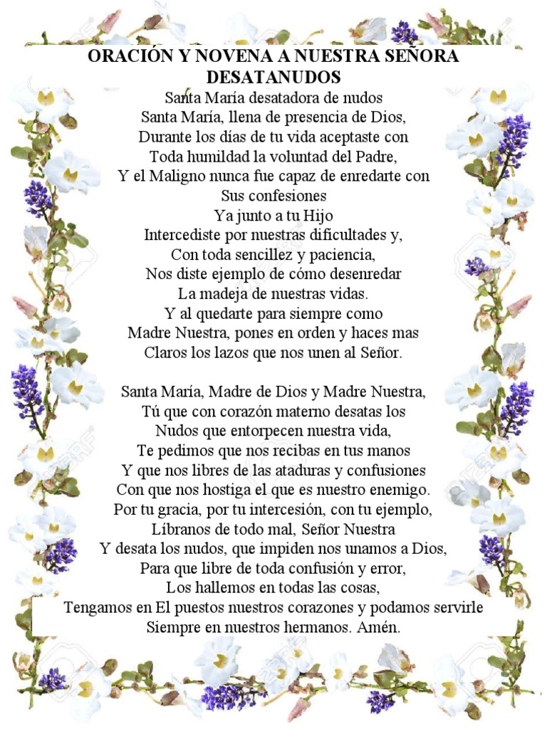 ORACIONES Oración y Novena a la Virgen Desatanudos