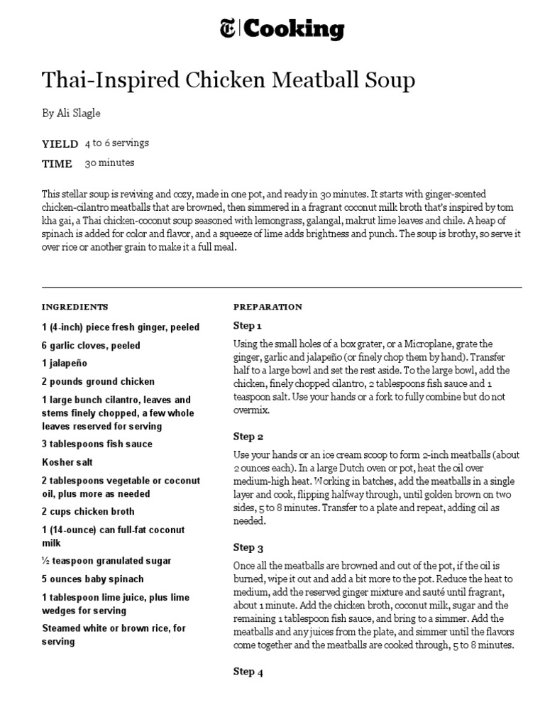 ThaiInspired Chicken Meatball Soup Recipe NYT Cooking PDF Soup