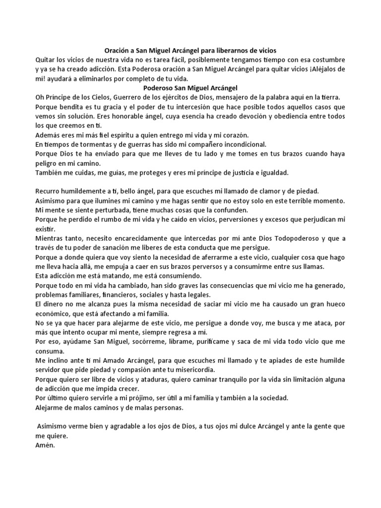 Oración A San Miguel Arcángel para Liberarnos de Vicios PDF Oración