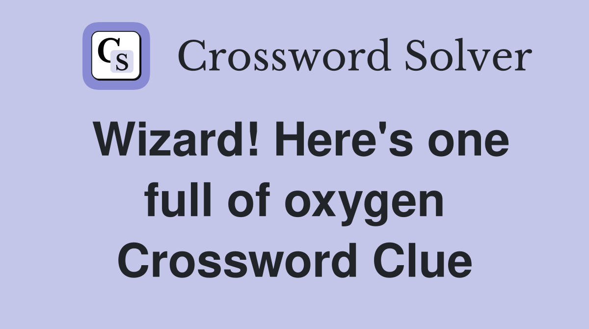 Wizard! Here's one full of oxygen Crossword Clue Answers Crossword