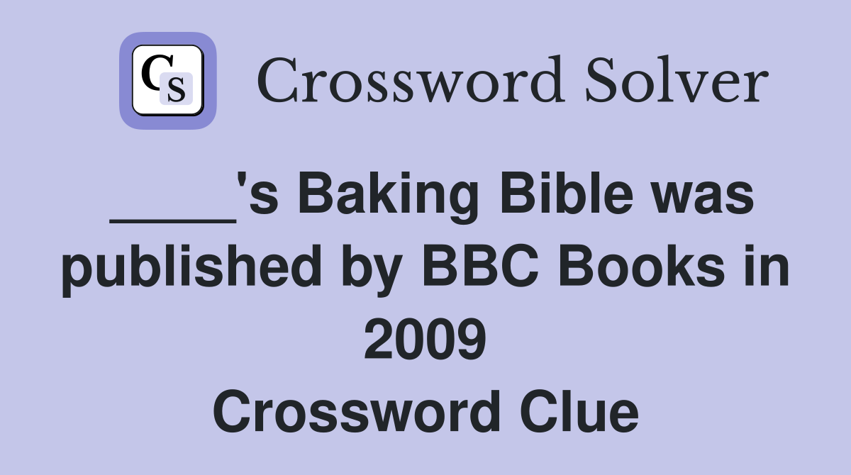 s Baking Bible was published by BBC Books in 2009 Crossword Clue