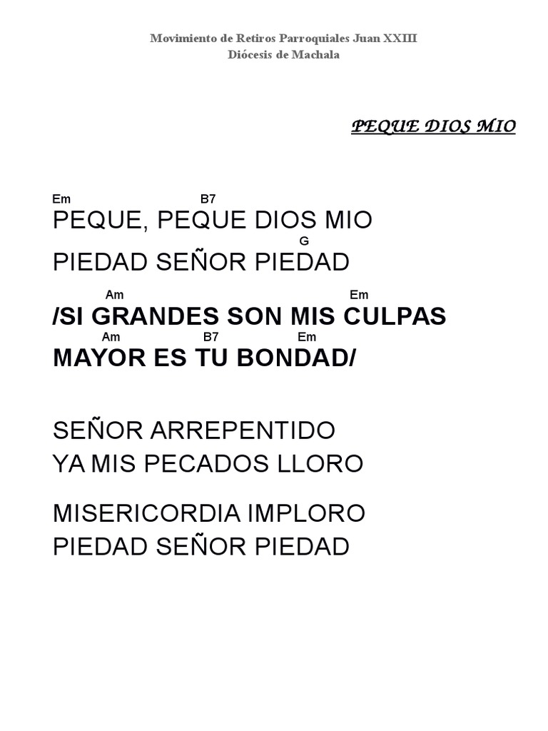 Peque Peque Dios Mio - Si grandes son mis culpas, mayor es tu bondad. (bis) por tu preciosa sangre, piedad, señor, piedad. Pequé, pequé, dios mío, piedad, señor, piedad. Por tus profundas llagas piedad,. Si grandes son mis culpas, mayor es tu bondad.