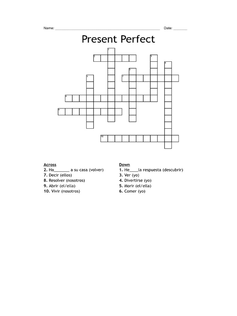 Regular and Irregular Verbs in the Present Perfect Crossword Labs