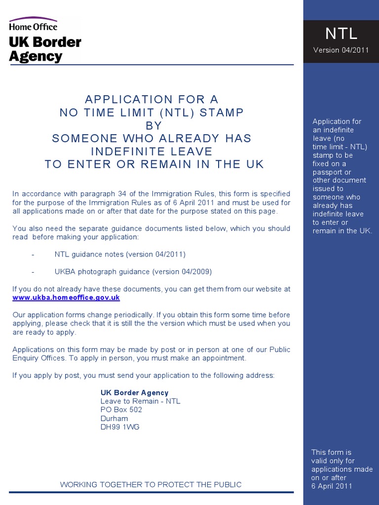 Fill NTL Application for No Time Limit (NTL) and (London Institute of