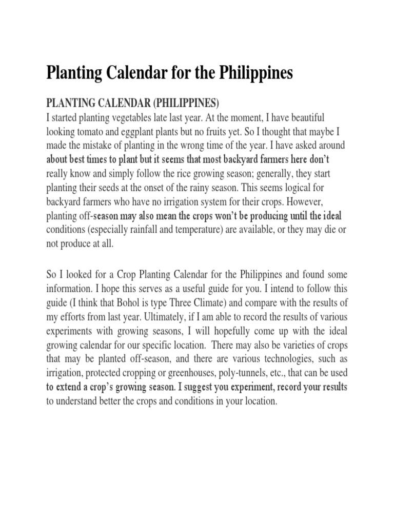 Planting Calendar for the Philippines Duckduckbro