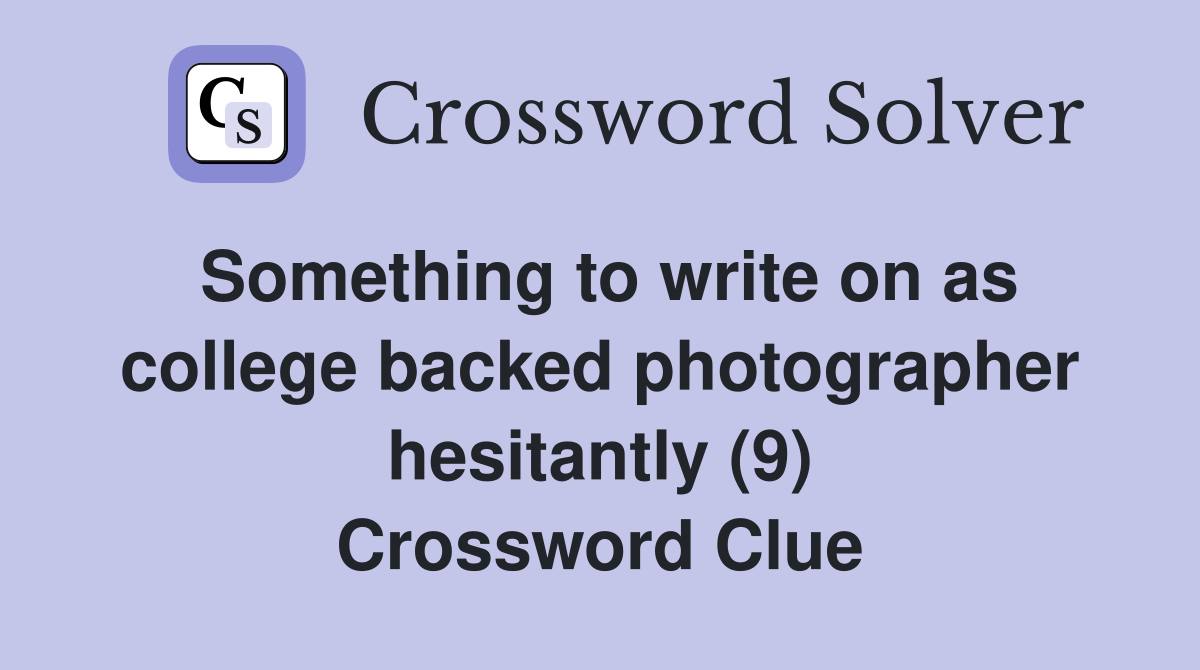 Photographer goldin universal crossword clue. The web page lists three possible. While searching our database we found 1 possible solution for the: Here is the answer for the: The crossword solver found 30 answers to photographer goldin, 3 letters crossword clue.