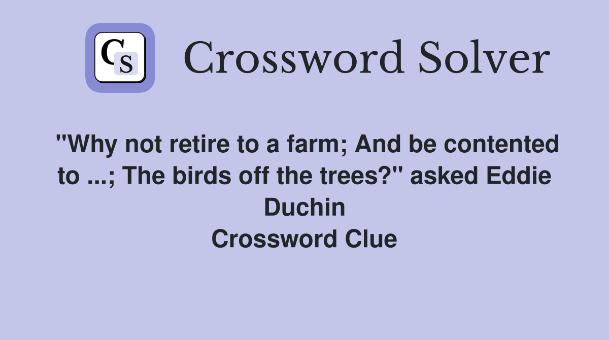 Crossword clue answers and solutions. The crossword solver found 30 answers to place to retire to? We have found 40 possible answers for this clue in our database. This crossword clue was last. The crossword solver finds answers to classic crosswords and.