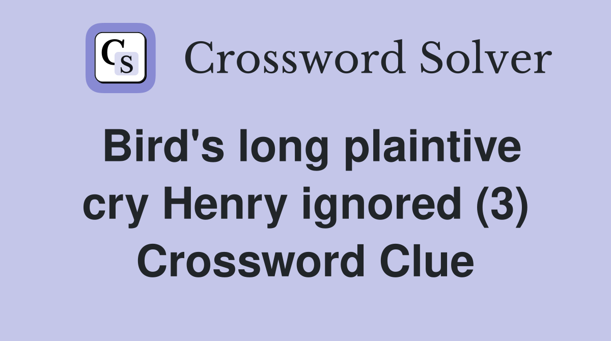 Bird's long plaintive cry Henry ignored (3) Crossword Clue Answers