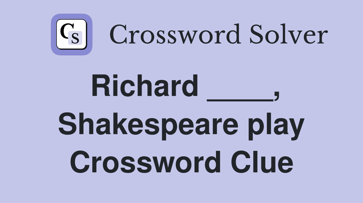 Richard ____, Shakespeare play Crossword Clue Answers Crossword Solver