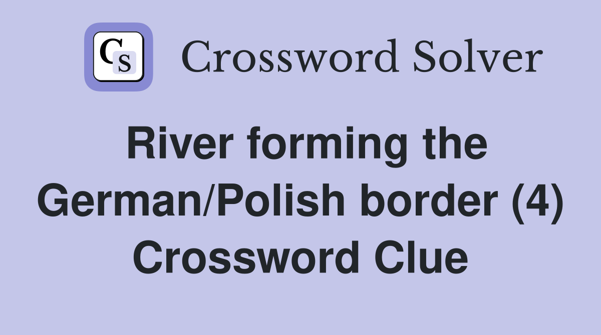 Answers for polish border river crossword clue, 4 letters. Search for crossword clues found in the daily celebrity, ny times, daily mirror, telegraph and. We know 2 solutions for: We found 20 possible solutions for this clue.