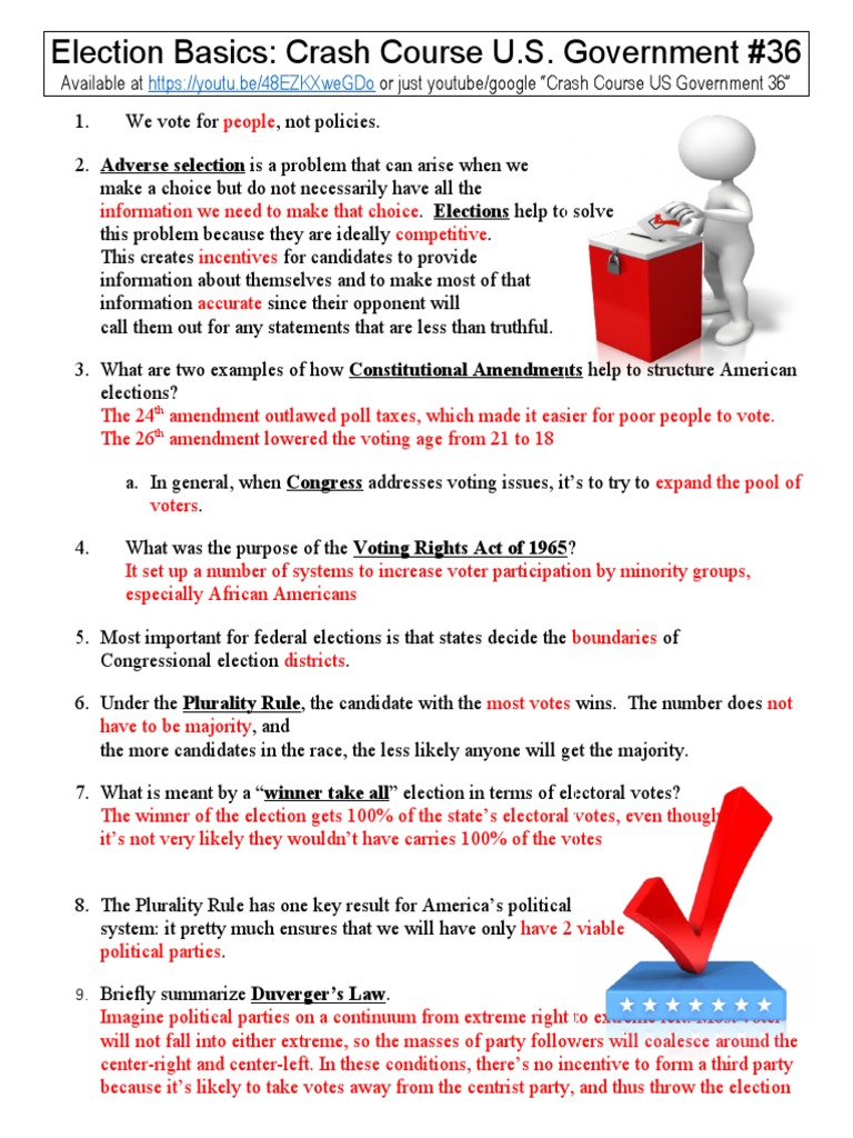 Crash Course U.S. Government and Politics 36 Election Basics PDF