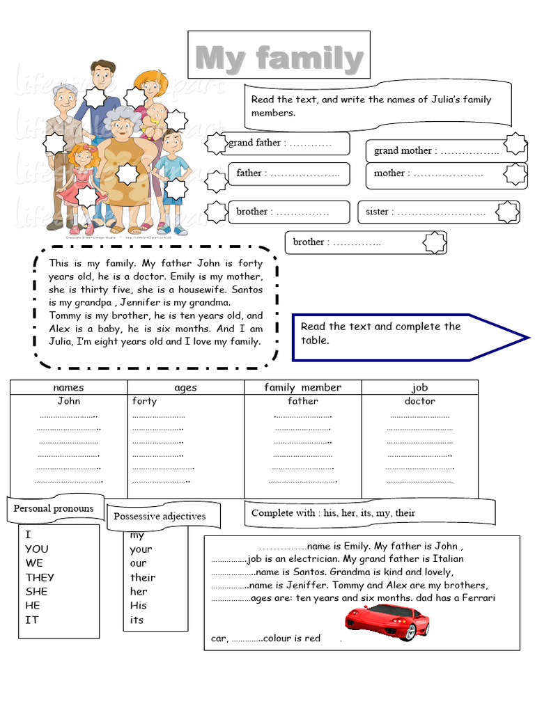 Family Members and Possessive Adjectives Activities Promoting Classroom