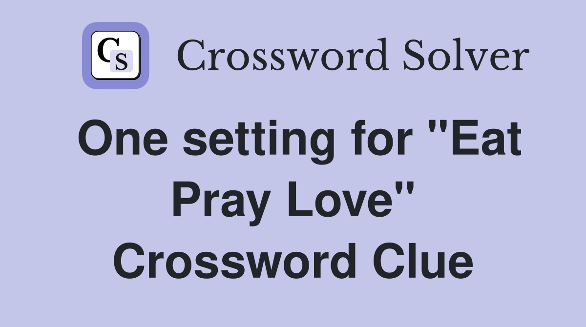 One setting for "Eat Pray Love" Crossword Clue Answers Crossword Solver