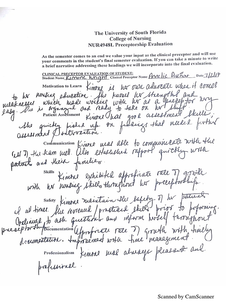 The preceptor is asked to evaluate the student's performance through chart review, direct observation, case discussion and performance. The preceptorship in this clinical area provided. All preceptor evaluation ratings and comments will be confidential and only reviewed by the department manager rating scale and. The information provided is necessary for the maintenance and improvement of the statewide. Thank you for.
