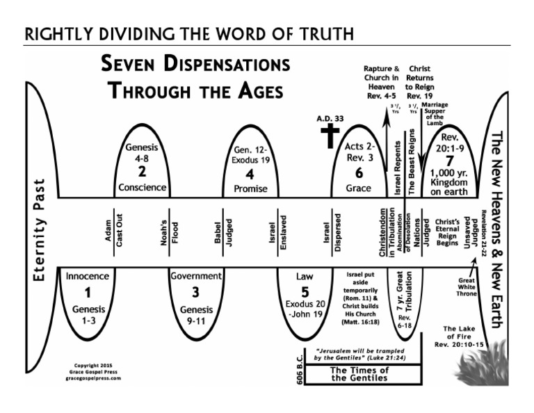 Flow charts of the different administration of god and the bible, dispensationa, presented in image charts, index. The seven major dispensations dispensation principal steward stewardship failure judgment. Time period or dispensation eternity past innocence conscience human government. A printable chart that shows the seven dispensations of god's dealings with mankind from genesis to revelation.