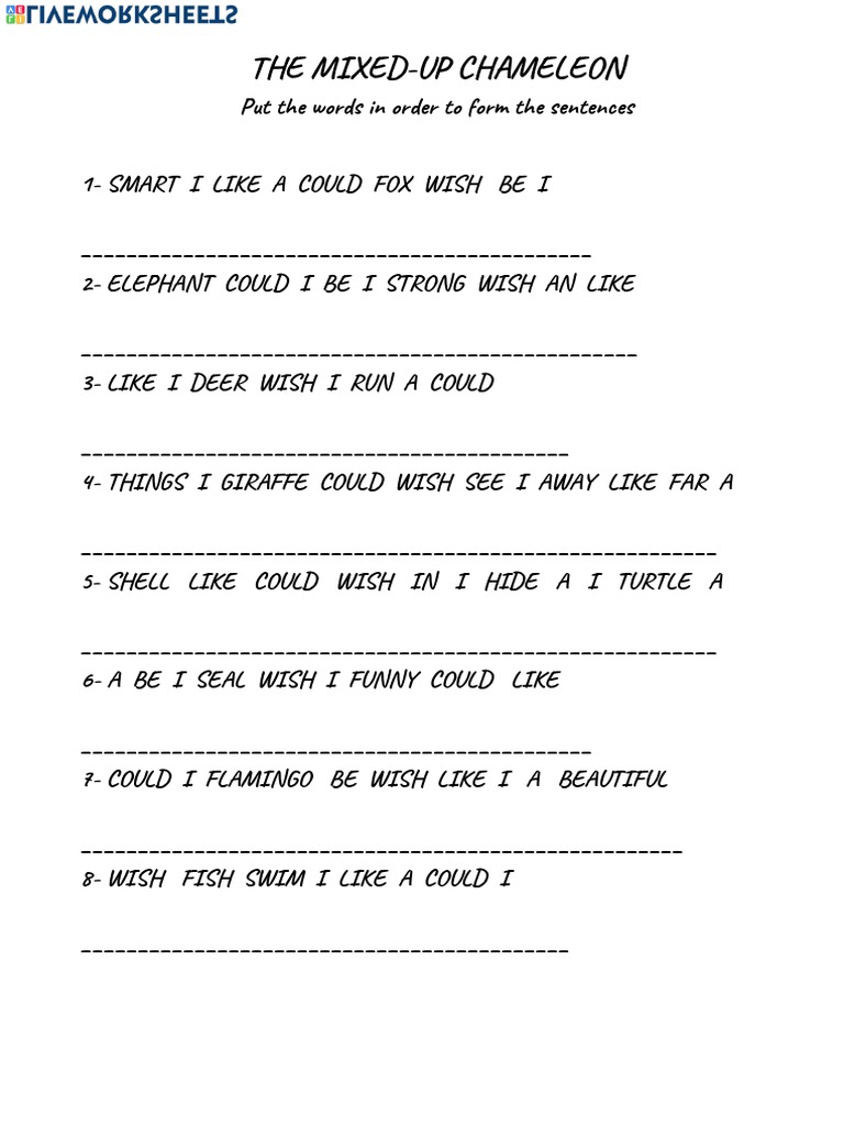 Printable The Mixed Up Chameleon Activities - Pretend you are a chameleon. Put the words back together. Put the words in the correct abc order. Go outside and try to blend in with your surroundings.