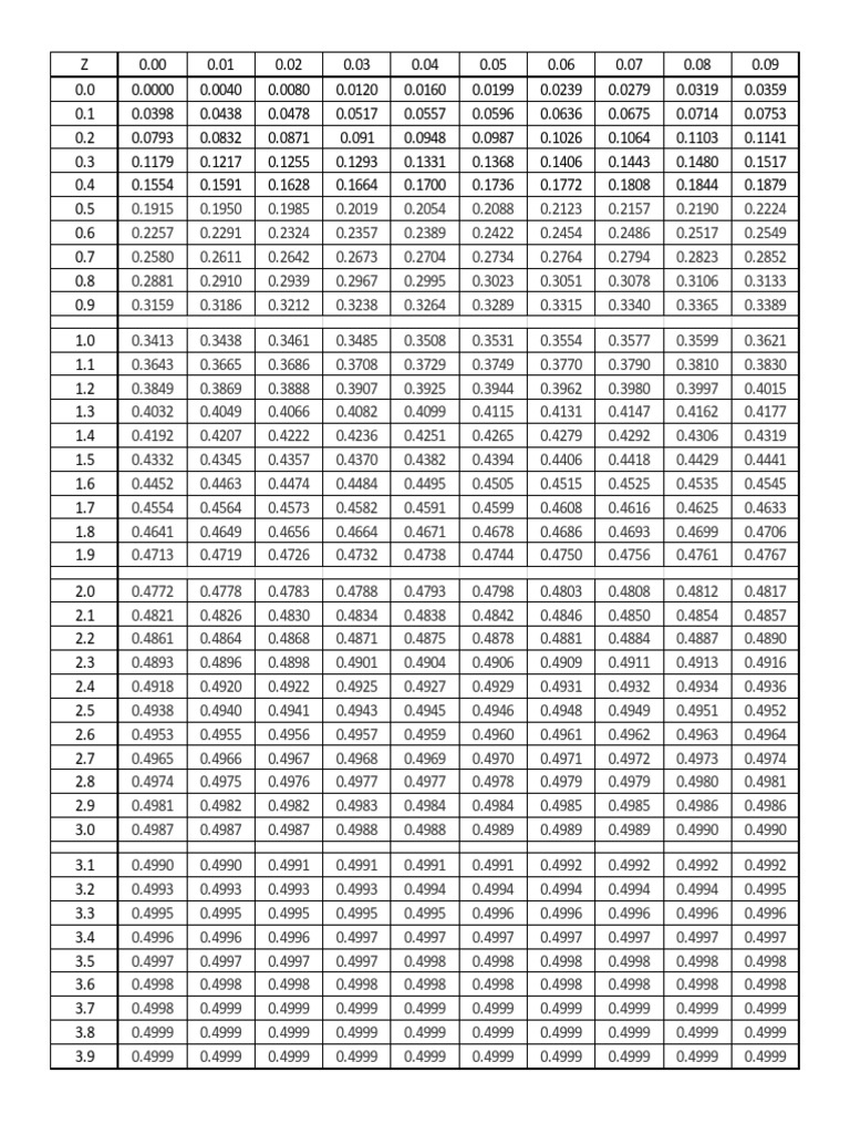 Pprintable Z Score Table Template Printable Images and Photos finder