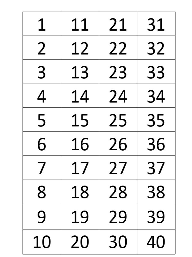 Numbers 1 40 Printable