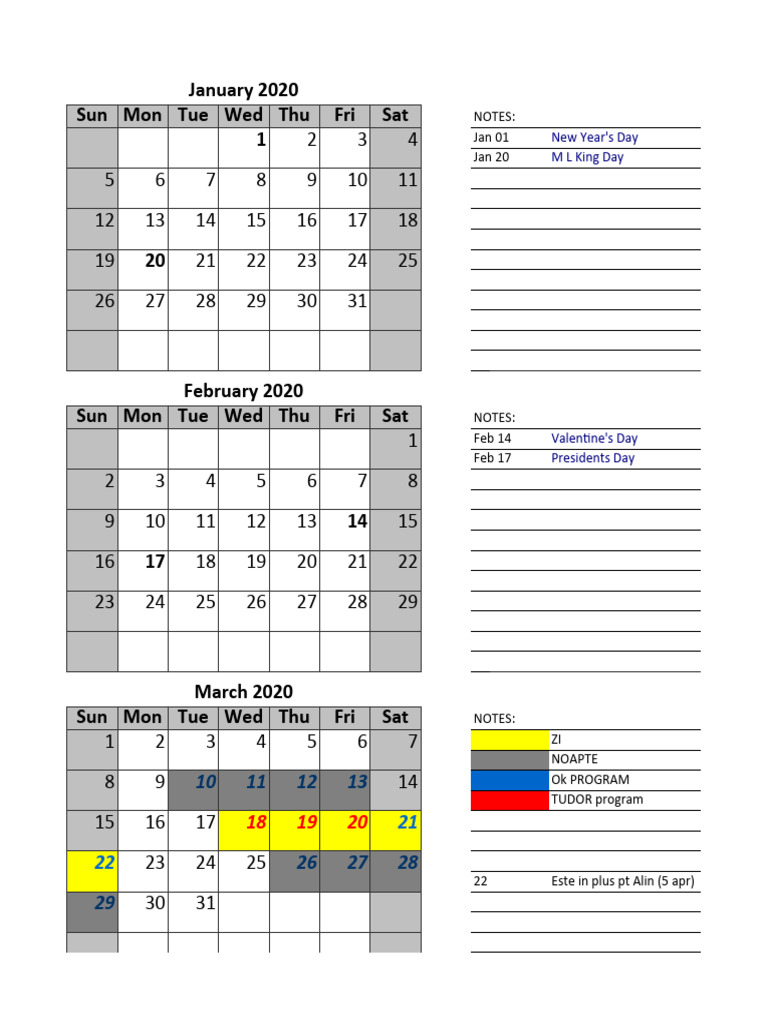 2020 Excel Calendar Quarterly Spreadsheet 13 PDF Observances