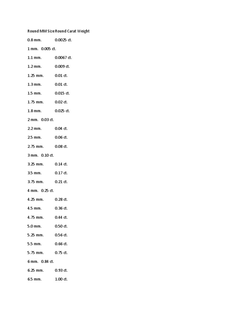 If they are not, reprint the page, making sure the page Although carat weight is deemed to be the standard unit of measurement for diamonds, it’s also essential to consider the millimeters and. Use our diamond size chart to understand the millimeter (mm) size of each diamond shape. Want to know the actual size of a 1 carat diamond on a hand?