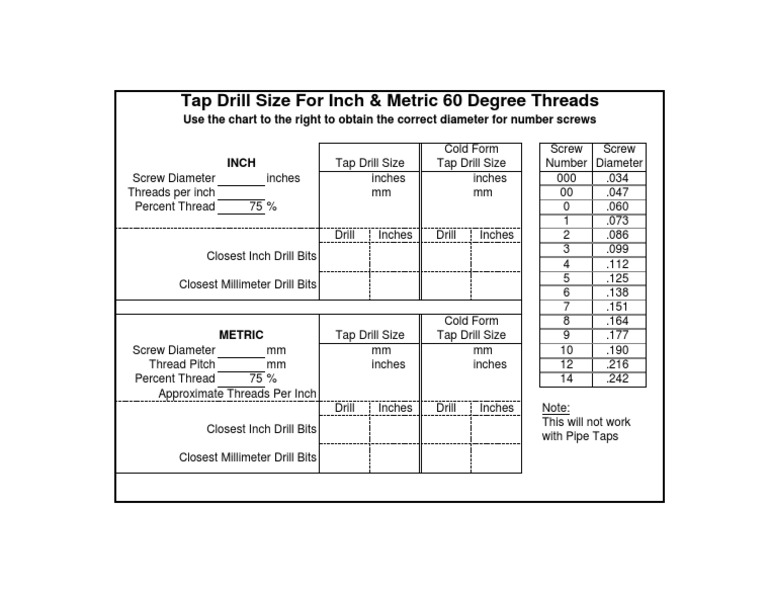 Tap Drill Chart Metric Imperial Size [Plus Something, 46 OFF
